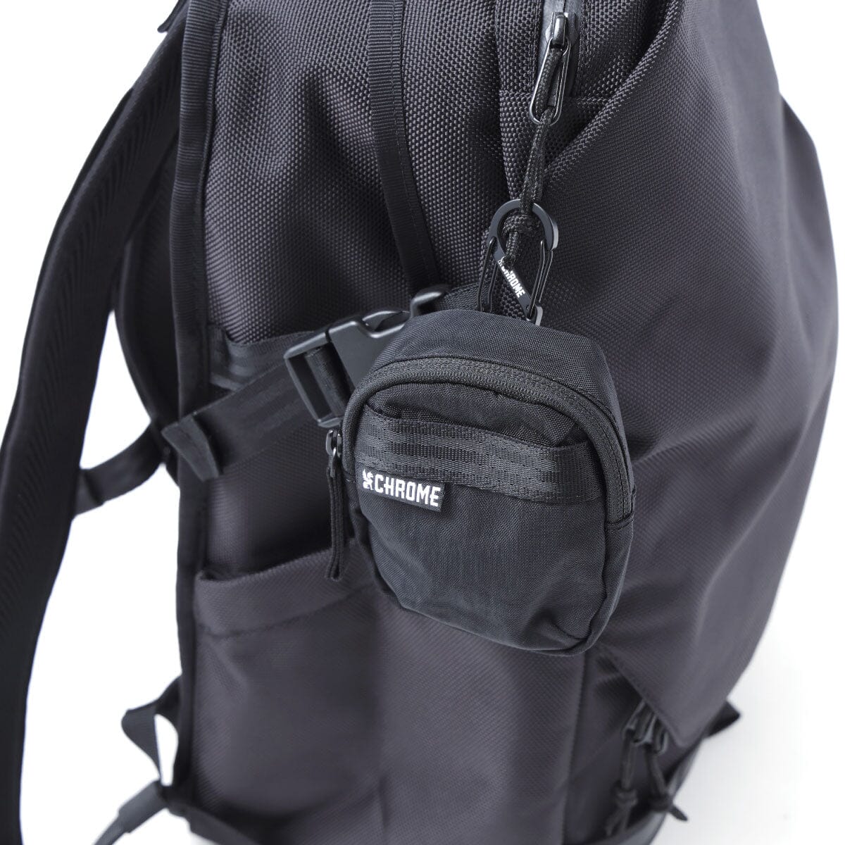 | 小さいながらもワイヤレスイヤホンやパッカブルバッグ、電子タバコやコインウォレットまで収納可能。 | 付属のカラビナを使用すればお持ちのバッグやベルトループに付けて持ち運び可能。 |