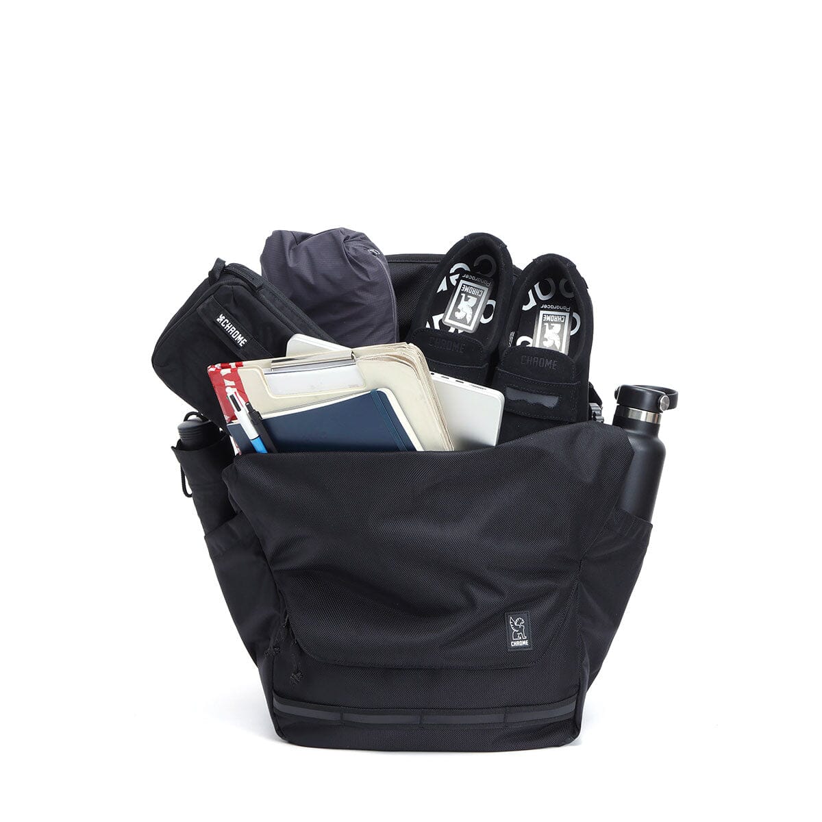 | ボトム部分にはシューズやランチボックスを収納できる独立したジップポケット。 | ボトムウェビングやロゴ、ジッパー引き手にはリフレクティブ素材を使用し、夜間の視認性/安全性を確保。 |