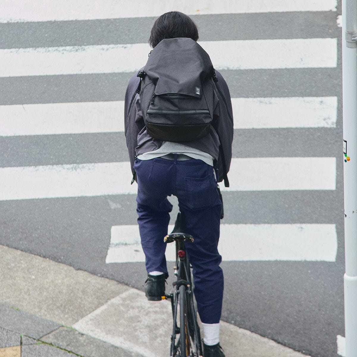WATER RESISTANT 突然降ってきた短時間のライトな雨などから荷物を守るための耐水素材を使用したモデル |